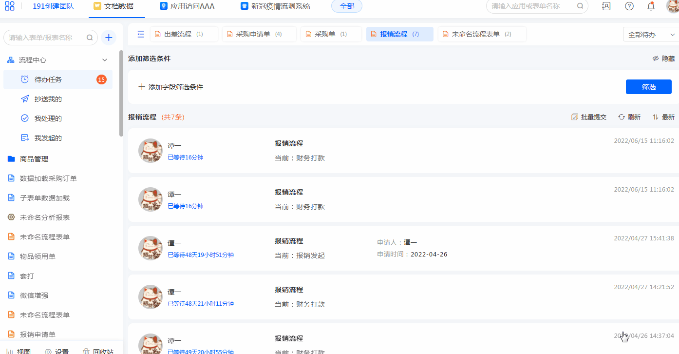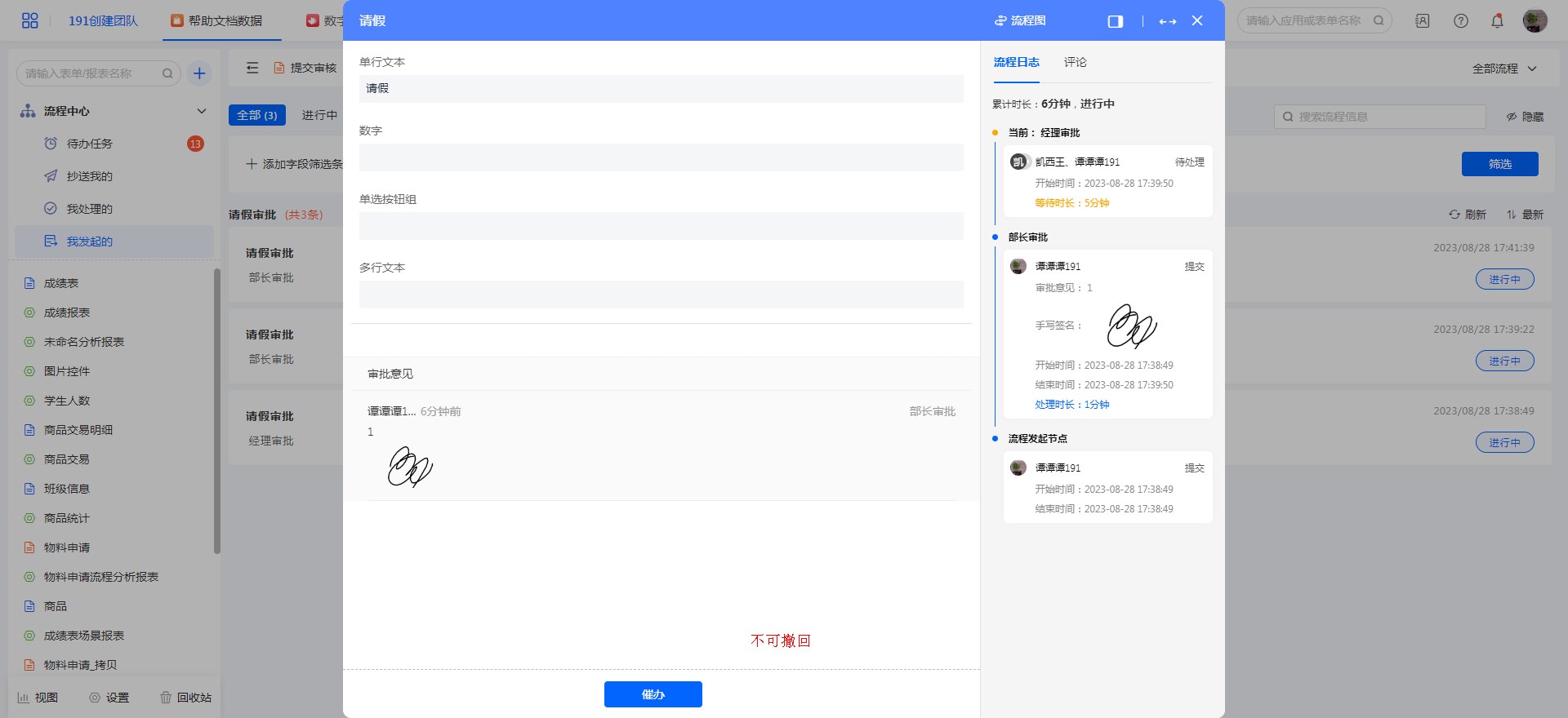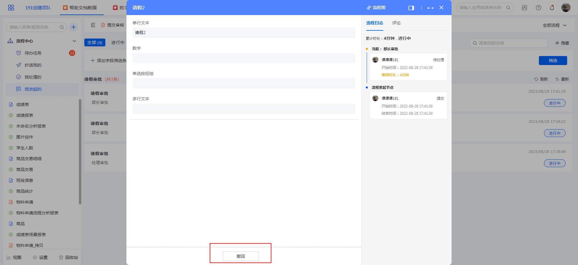 发起的流程中有需要修改的地方,发起人需要自行撤回数据,修改后重新提交。