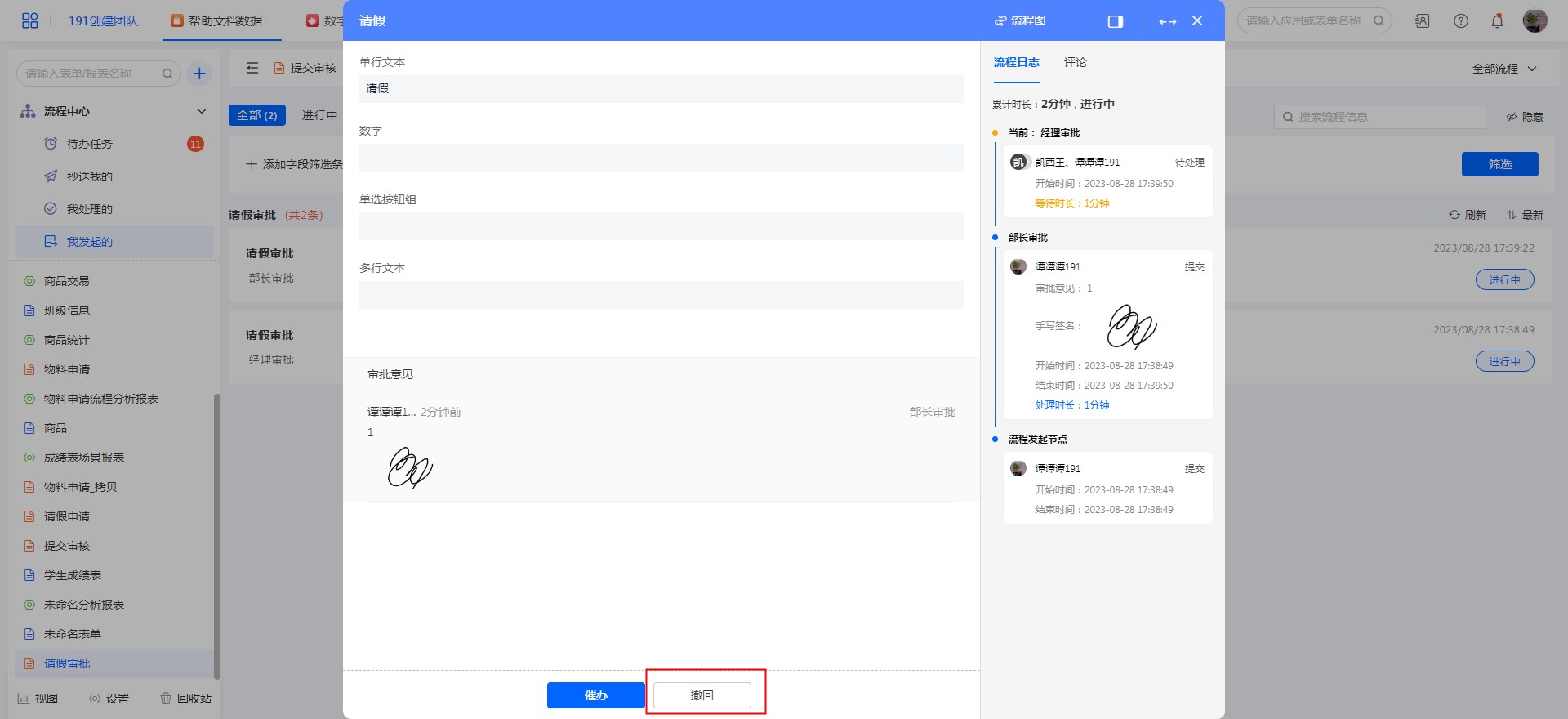 设置允许所有节点撤回,在我发起的/我处理的下,均可以进行撤回操作;
