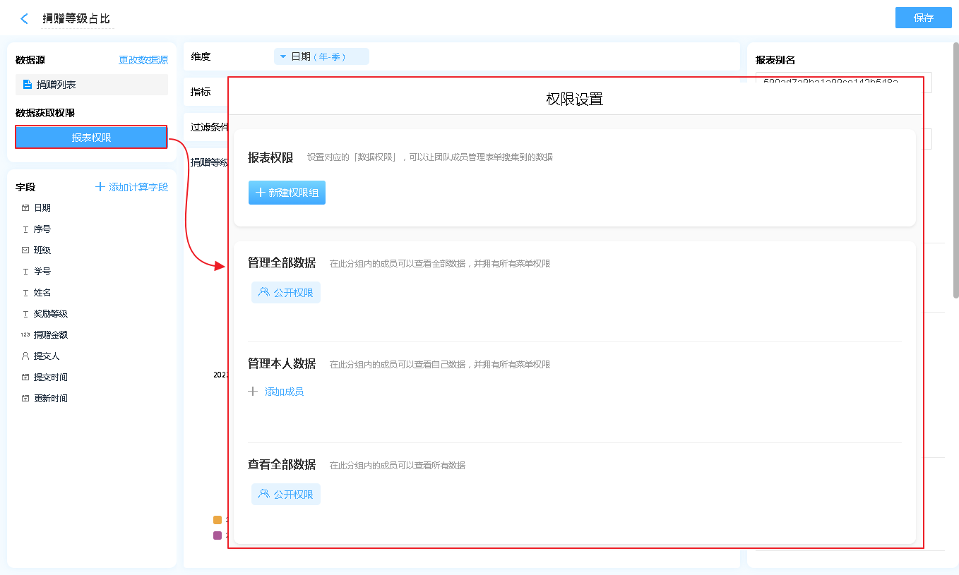 报表权限是指该报表的数据哪些人可以操作报表的数据,分别有什么操作权限。