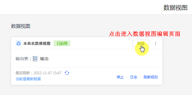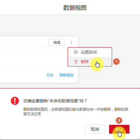 • 编辑可以对创建好的数据视图进行首次设计或二次修改。