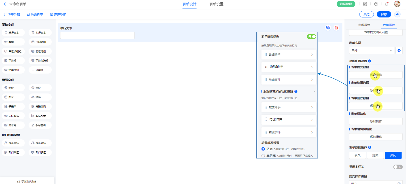 表单属性 - 功能扩展设置