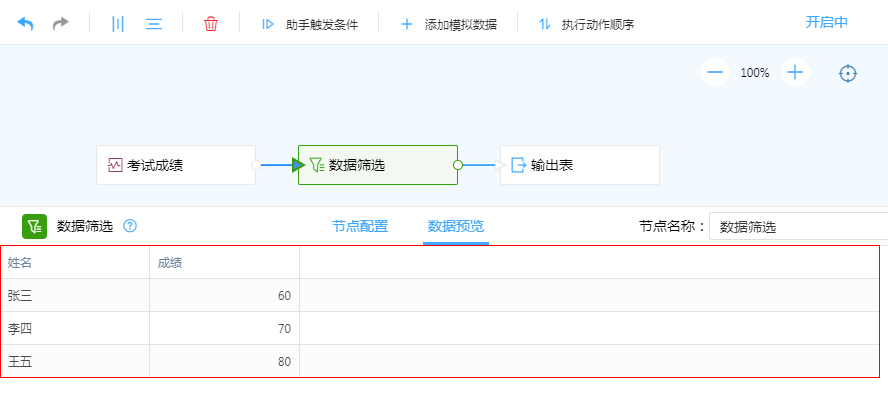 根据配置条件筛选后,只允许符合条件的数据通过。